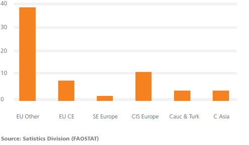 In 2011, egg output in this region amounted to 38.3 million tonnes, which was 58.7 per cent of the global figure of 65.2 million tonnes.